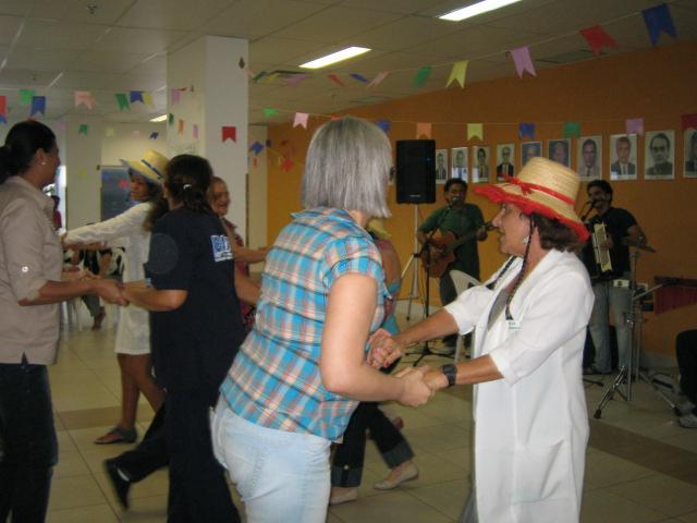 O Serviço Social do HGF promoveu nesta quarta-feira, 1º de junho, a abertura dos festejos juninos no Hospital Geral de Fortaleza. A festa, regada a bolo, mugunzá, vatapá e paçoca foi realizada no hall do auditório principal do hospital. A animação ficou por conta da Banda do Bob Araújo, já conhecida nas noites de Fortaleza pelo bom forró-pé-serra. E se a turma começou tímida, bastou a banda avançar no repertório que logo todo mundo estava dançando, sozinho ou acompanhado, dois pra lá e dois pra cá. A festa começou às 15h e se extendeu até às 17h. Confira aqui alguns dos melhores momentos. E se preparem, que vem mais festa por aí.